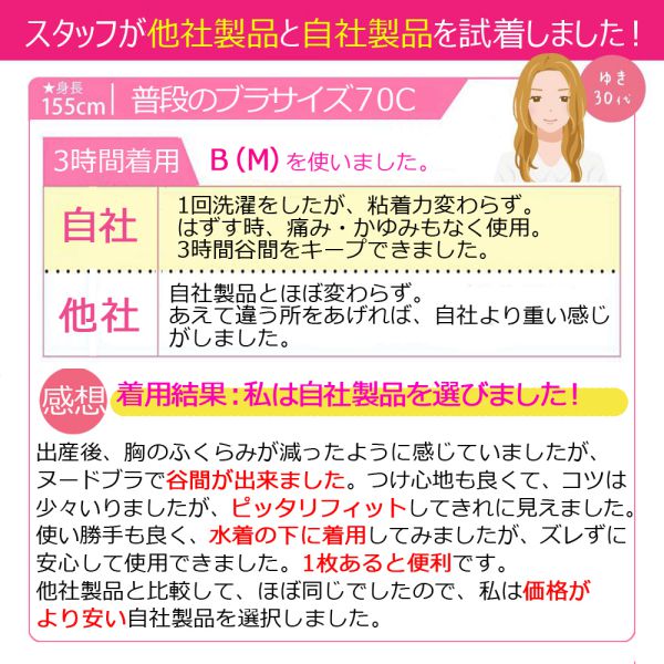 - 期待し、楽しみにしてたけど、私はバストふくよかタイプの為XLを注文しました、早速試着ガーン、粘着力が悪く、すぐ剥がれた、やはり、本家ジニアだね!ポイント使ったけど…無駄な買い物した(涙)