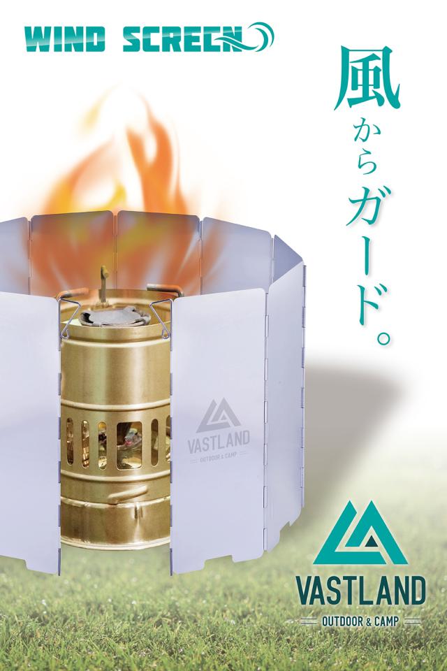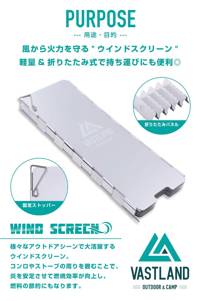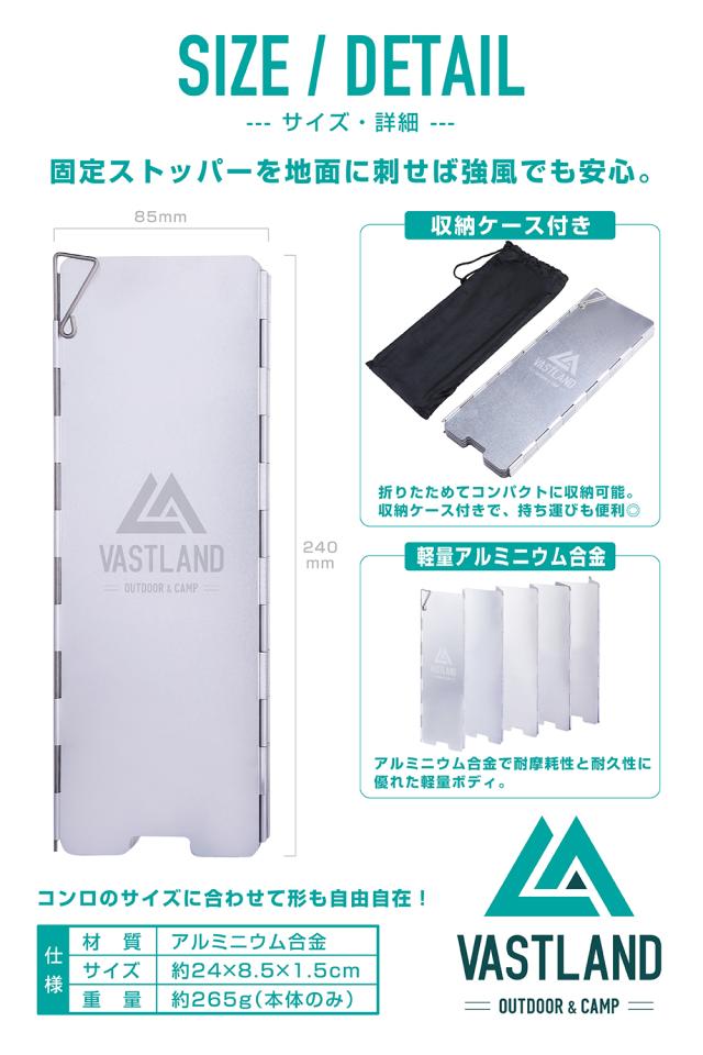 VASTLAND ウインドスクリーン 風防板 風除け アウトドア キャンプ アルミ 240×85mm 10枚組 収納袋付き