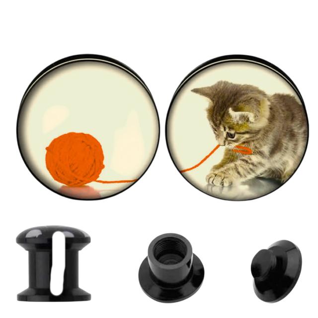 1個だけ見ても何かなと思わせる2個セットになったデザインが可愛い毛糸で遊ぶネコをモチーフにしたアクリル製ネジタイプのボディピアス。両耳に付けても片側ずつ彼氏彼女とシェアしても可愛いネコのボディピアス。黒色のプラスティック製のネジ式ダブルフレアなので装着も簡単。しかもプラスチック製なので金属アレルギーもなし。メンズでもレディースでも使えるボディピアスです。ペアやプレゼントにも最適です。