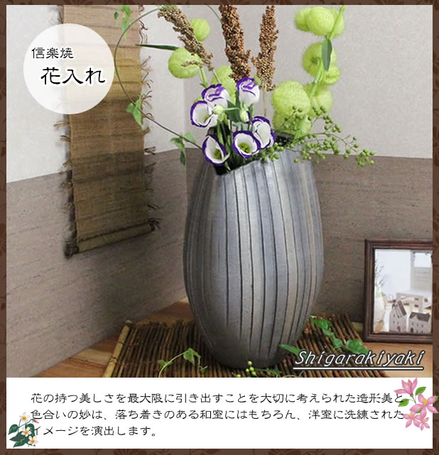 暮らしに調和しさり気なくこだわる信楽焼の花入れ。信楽焼らしい土物の素朴さが、お花を引き立てます。