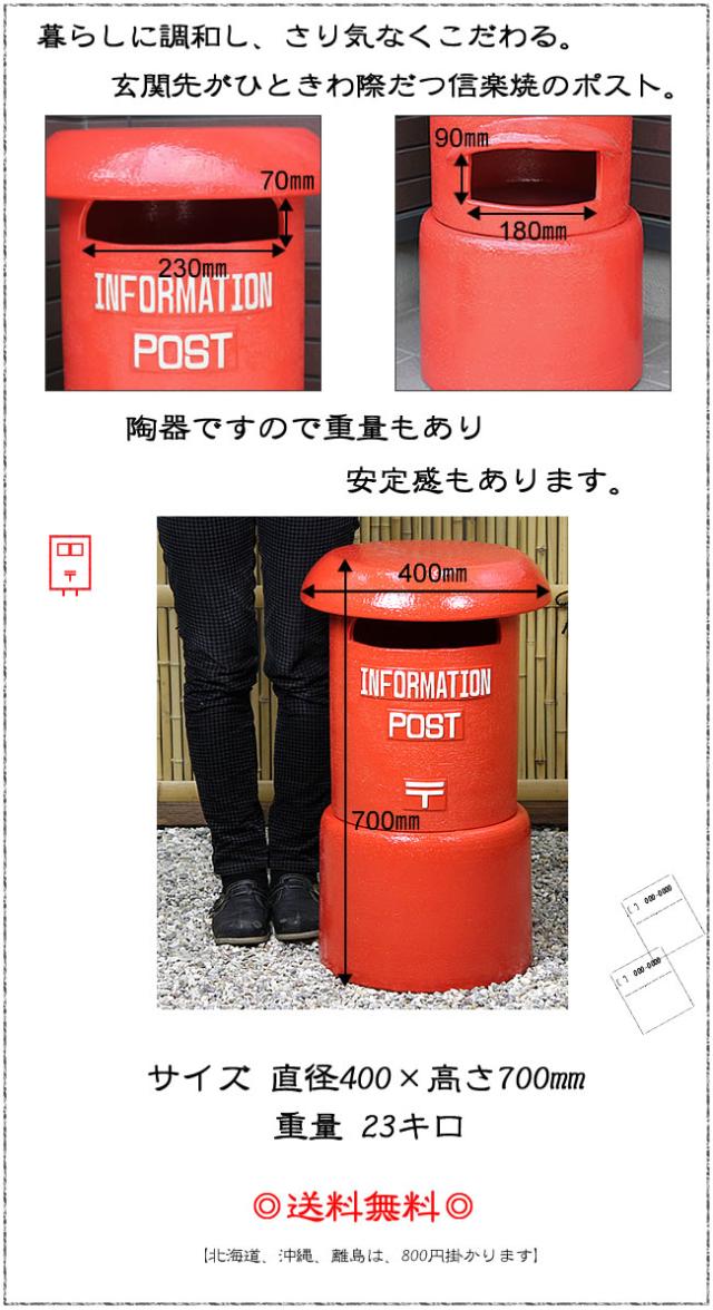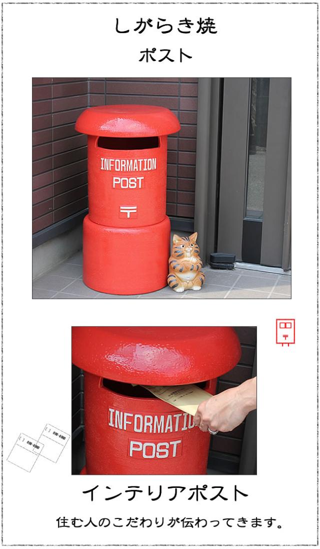 陶器 陶製レトロ赤ポスト(大) 名前入れ可 郵便受け 新聞受け 玄関 インテリア 郵信楽焼 おしゃれ 和風【手作り】