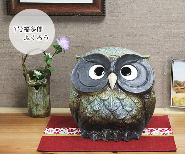 陶器 【送料無料】 7号福多郎(青)!梟 ふくろう 置物 フクロウ ふくろう信楽焼 おしゃれ 和風【手作り】