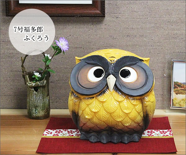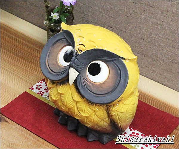 陶器 【送料無料】 7号福多郎(黄)!梟 ふくろう 置物 フクロウ ふくろう信楽焼 おしゃれ 和風【手作り】