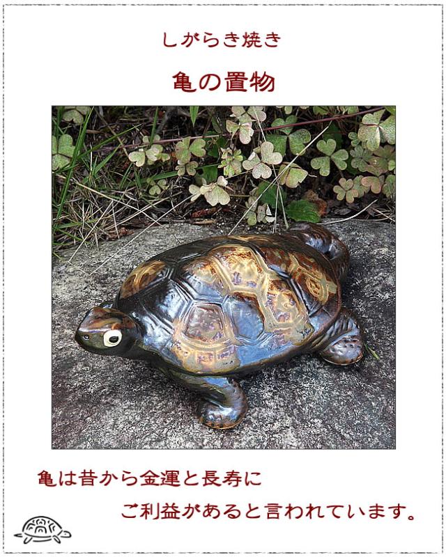 陶器 6号福亀おきもの長寿・金運にご利益あり かめ置き物 カメ 縁起物 しが信楽焼 おしゃれ 和風【手作り】