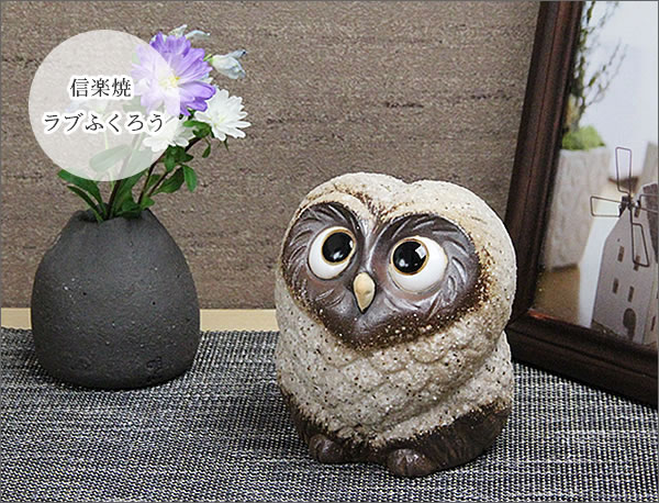 陶器 ラブふくろう小(古信楽)!梟 ふくろう 置物 フクロウ ふくろ信楽焼 おしゃれ 和風【手作り】