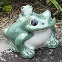 縁起物の信楽焼のカエル。人の心癒してくれる陶器の蛙です。