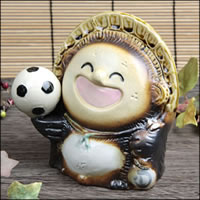 サッカーたぬき 置物 名入れ 5号笑福 狸 縁起物 信楽焼 おしゃれ 和風 陶器 【手作り】