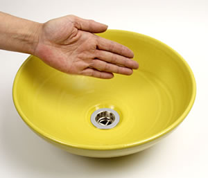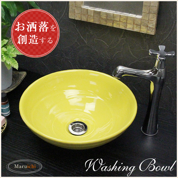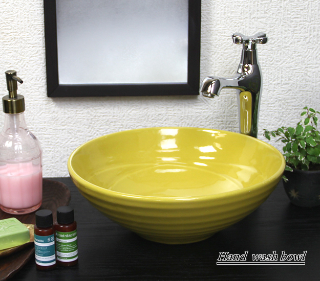 陶器 黄色(小型)手洗い鉢 洗面ボール 洗面器 手洗器 手洗鉢 信楽焼 おしゃれ 和風【手作り】
