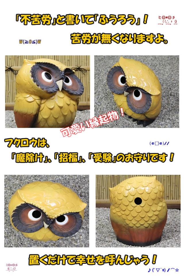 フクロウは「不苦労」ともいい、ふくろうを置くと苦労がなくなると言われており大変縁起の良い鳥です。