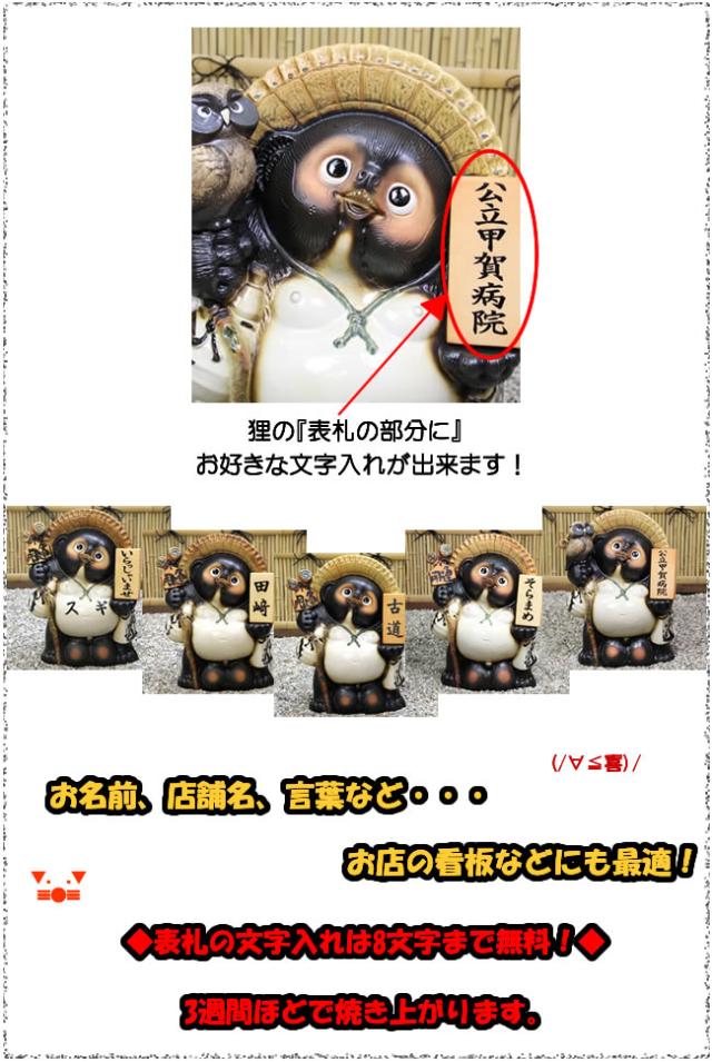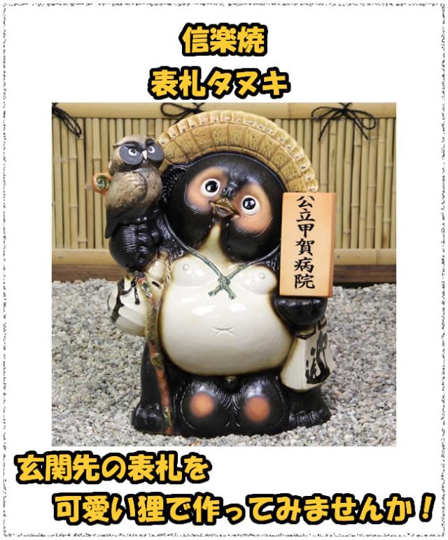 信楽焼き表札狸に文字が入ります。オリジナルのタヌキで玄関を!