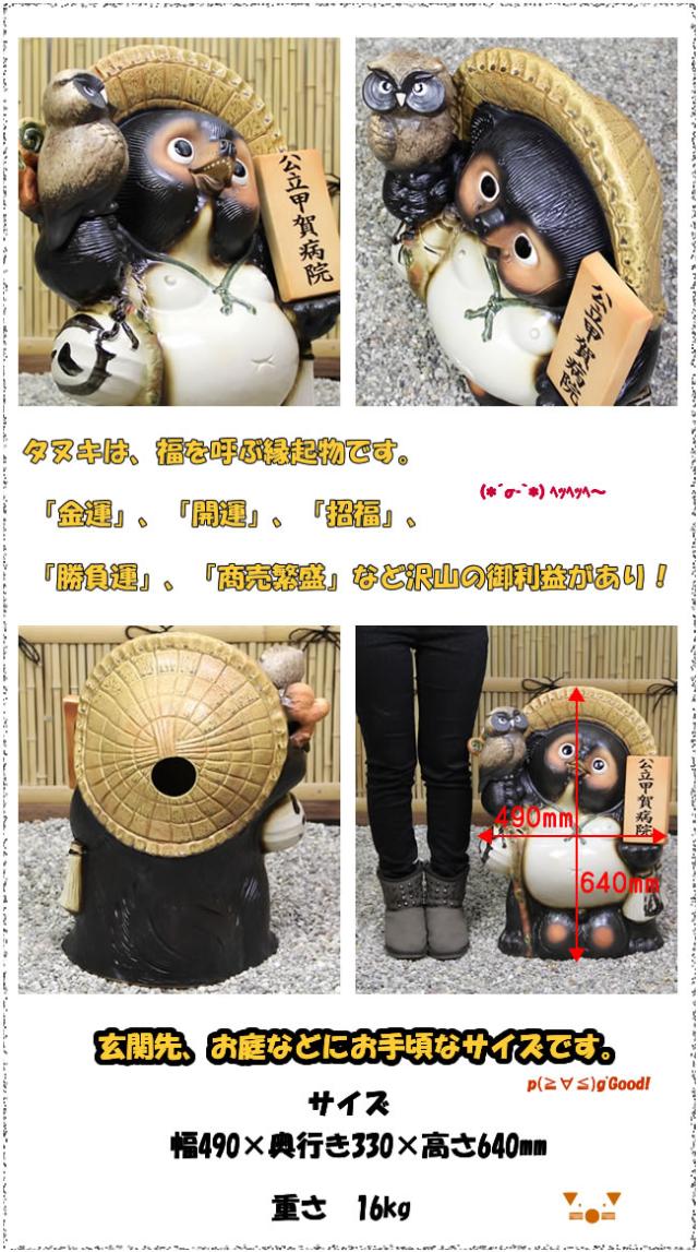 表札 狸 たぬき 置物 名入れ 20号ふくろう持ち 縁起物 信楽焼 おしゃれ 和風 陶器 【手作り】