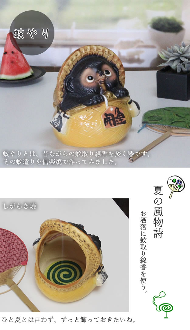 信楽焼きタヌキ蚊遣り!ギフトにも最適!陶器たぬき蚊やり