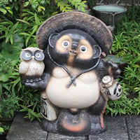たぬき 置物 名入れ 30号古信楽風ふくろう持ち狸 縁起物 信楽焼 おしゃれ 和風 陶器 【手作り】