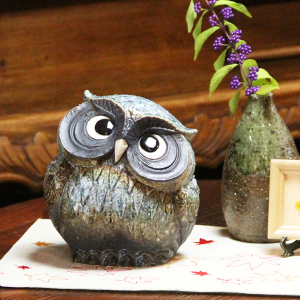 幸せを呼ぶフクロウです。信楽焼きふくろうに癒されて下さい。