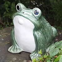 縁起物の信楽焼のカエル。人の心癒してくれる陶器の蛙です。