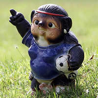 サッカー 女 メス たぬき 置物 名入れ 縁起物 信楽焼 おしゃれ 和風 陶器 【手作り】