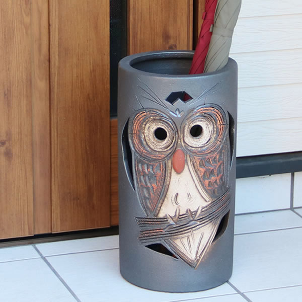 信楽焼ならではの素朴な風合いの傘立て、飽きの来ない傘たて