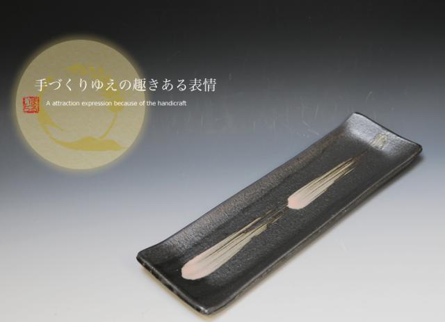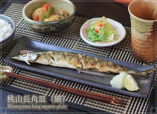 長皿 魚 皿 和食器 盛り付け 魚 取り皿 黒 桃山長角皿(細) w923-05信楽焼 おしゃれ 和風 陶器 【手作り】