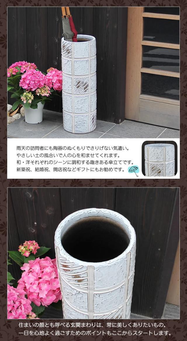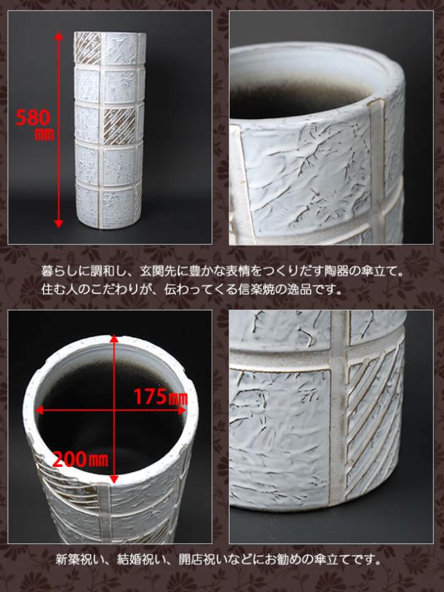 傘立て 陶器 アンブレラスタンド 白格子模様 玄関 インテリア かさたて 信楽焼 おしゃれ 和風 北欧【手作り】