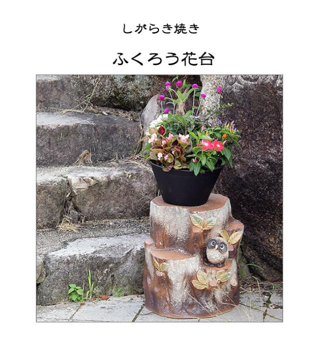 陶器 【送料無料】 切り株ふくろう花台(大) ふくろうが乗っている 花台 架台 いす 梟 信楽焼 おしゃれ 和風【手作り】