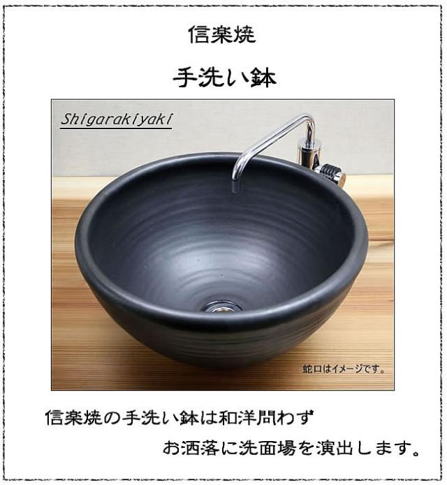 ◆信楽焼手洗器◆【品番】tr-2028【品名】信楽焼き黒マット深型手洗い鉢【サイズ】直径360×高さ180ミリ手作りの為多少の誤差があります。【排水金具】サンエー水栓PH-31-25をセットした状態でお届けします。【送料】北海道、沖縄、離島以外の地域は無料です。北海道、沖縄、離島は800円掛かります。◎洗面台に信楽焼きの土のぬくもりを感じてみませんか。機能性と空間のことを考えた土もの陶器洗面ボールです。当店の洗面ボウルは和洋問わず旅館、ホテル、飲食店などの店舗様、そして最近では個人様宅で多数ご使用頂いております。