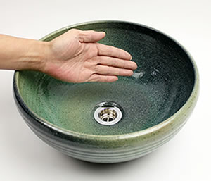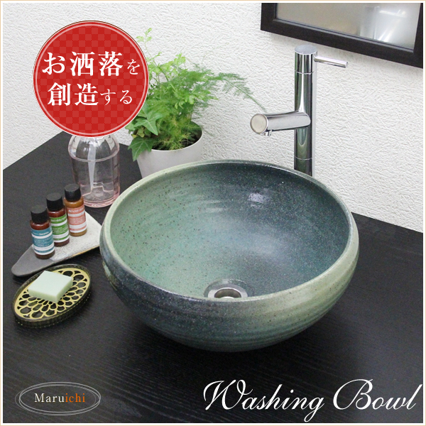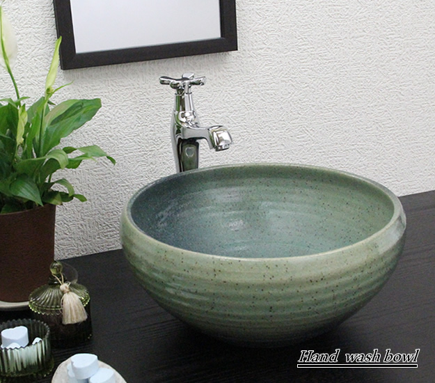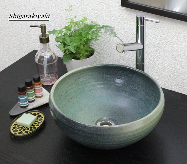 陶器 緑斑点手洗い鉢 洗面ボール 洗面器 手洗器 手洗鉢 信楽焼 おしゃれ 和風【手作り】