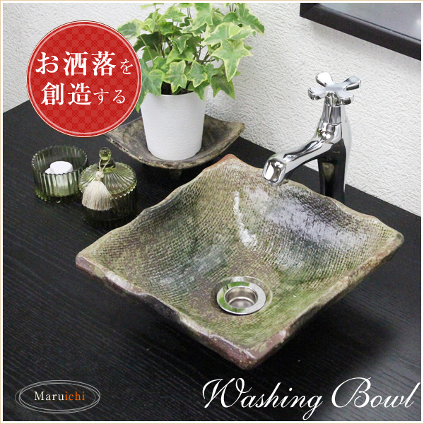 陶器 正角火色手洗い鉢 洗面ボール 洗面器 手洗器 手洗鉢 信楽焼 おしゃれ 和風【手作り】