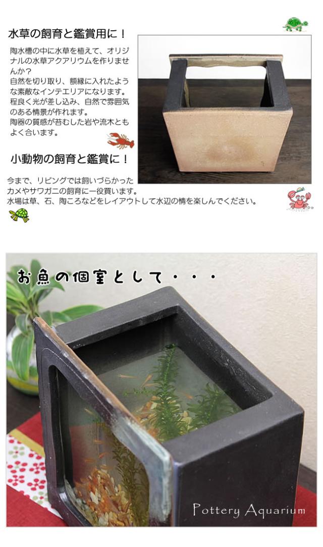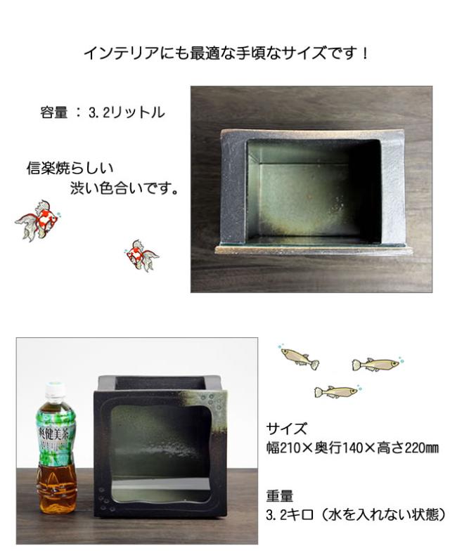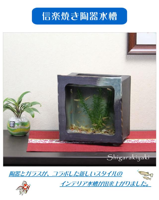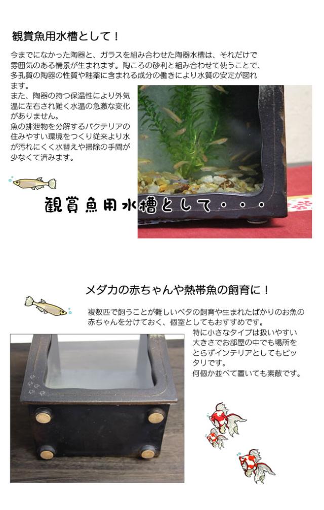 陶器 水槽 角型(茶色)水槽 とガラスがコラボ インテリア水槽 金魚鉢 メダカ鉢 陶信楽焼 おしゃれ 和風【手作り】
