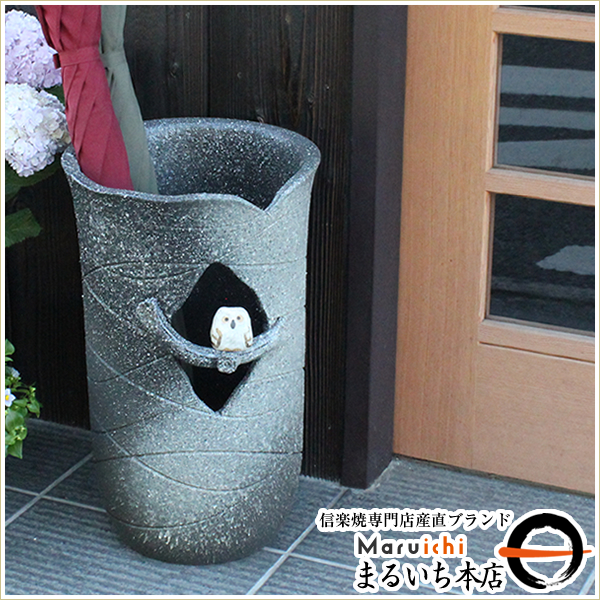傘立て 陶器 アンブレラスタンド フクロウ ふくろう 幸運 フクロウ 玄関 インテリア 信楽焼 おしゃれ 和風 北欧【手作り】