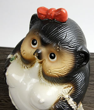 タヌキには珍しいメスです。オスのタヌキと一緒に置くと、より一層可愛いでしょう。