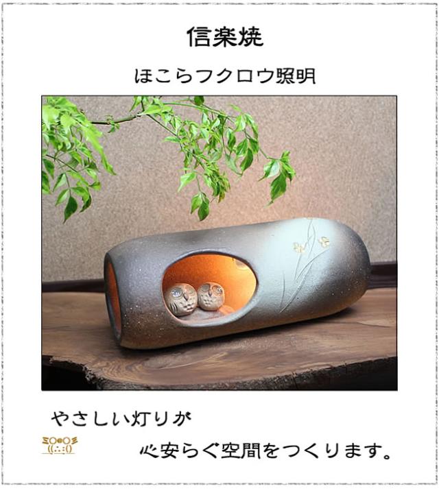 信楽焼フクロウ照明!可愛いふくろうに明りが灯ります。