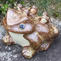 縁起物の信楽焼のカエル。人の心癒してくれる陶器の蛙です。