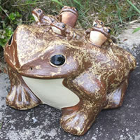 陶器 13号五匹子付き蛙 (むかえる) お庭 玄関先 蛙蛙 信楽焼 おしゃれ 和風【手作り】
