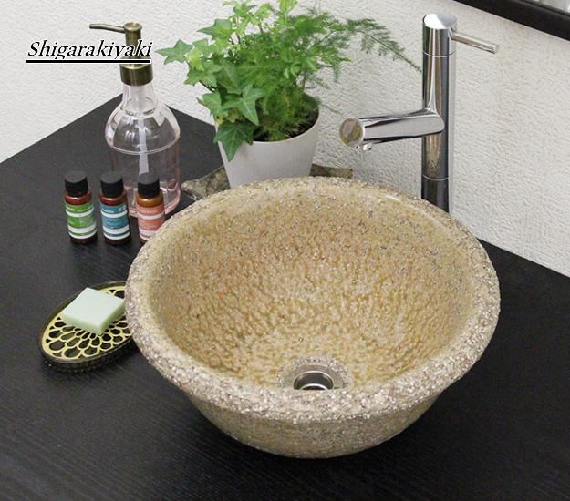 信楽焼き手洗い鉢で洗面場を演出!土ものの陶器洗面ボウルです