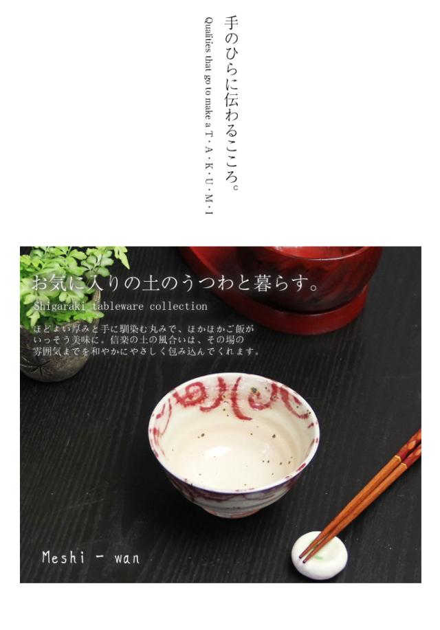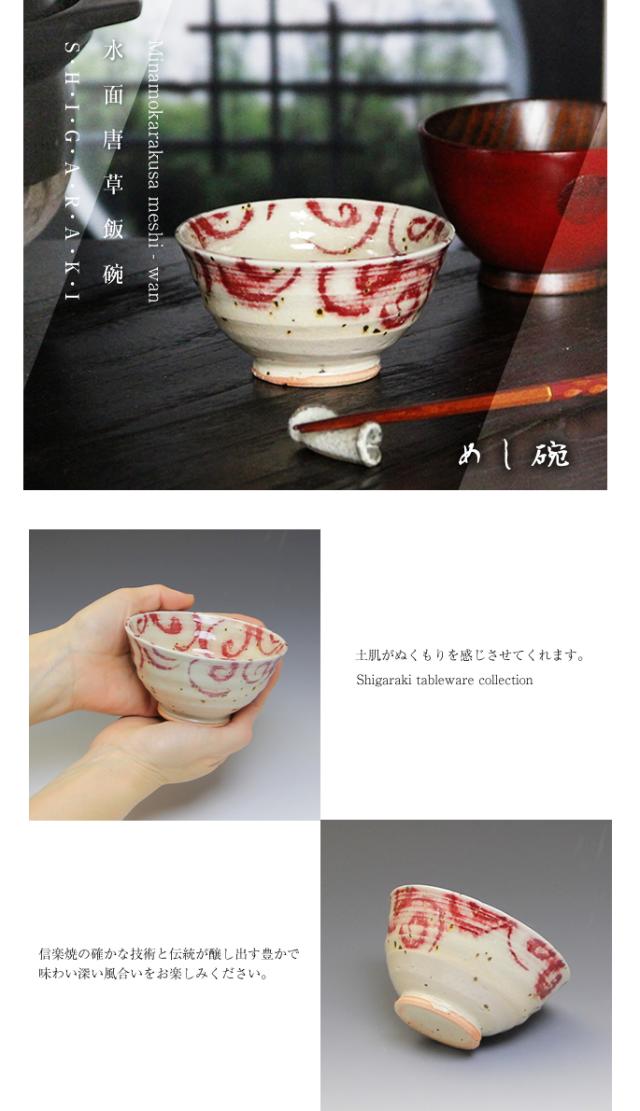 茶碗 水面唐草(赤)飯碗 ご飯茶碗 丼 食器 茶わん めし碗 うつわ 信楽焼 おしゃれ 和風 陶器 【手作り】