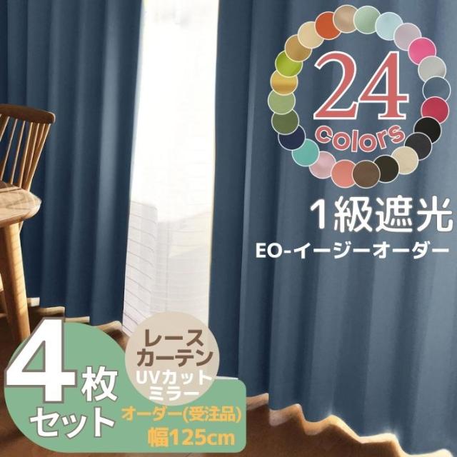 カーテン 遮光 EO-ソリッド1級遮光カーテン&レースカーテンセット【幅100 or 200cm×丈150~220cm】