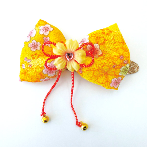 ちりめん生地で縫わずに作れる、和装にぴったりのヘアアクセサリーです。