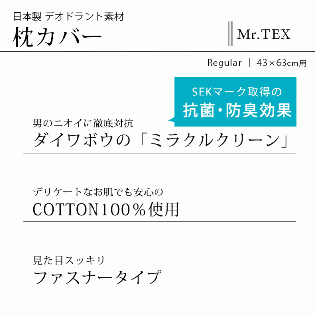 抗菌防臭 枕カバー 43×63 ミスターテックス Mr.TEX 無地 ピローケース 日本製 カバー