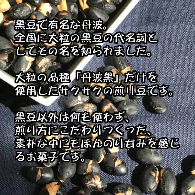 【煎り黒豆】丹波黒を使用した、大粒サクサクの煎り豆。黒豆ならではの香ばしさが最高!黒豆ご飯にするのもおススメ!