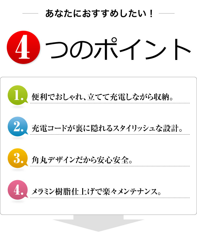 ・充電コードが裏に隠れるスタイリッシュな設計。