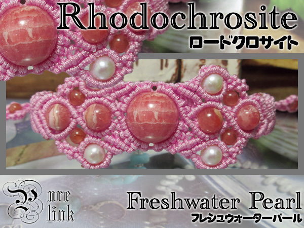 情熱の魔石『ロードクロサイト』と『パール』マクラメ編ブレスレット