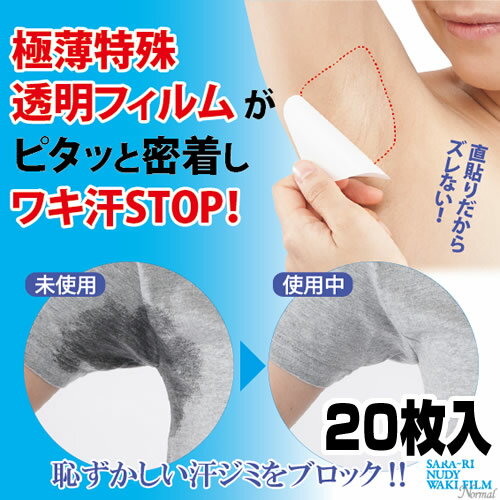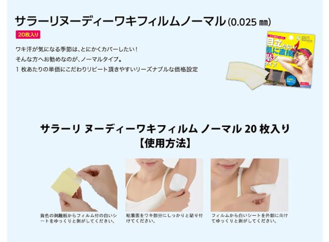 サラーリ ヌーディワキフィルム ノーマル 20枚 わき汗パッド ワキ汗パッド 脇汗パッド 汗わきパッド 汗脇パッド 汗ワキパッド ワキ汗対策
