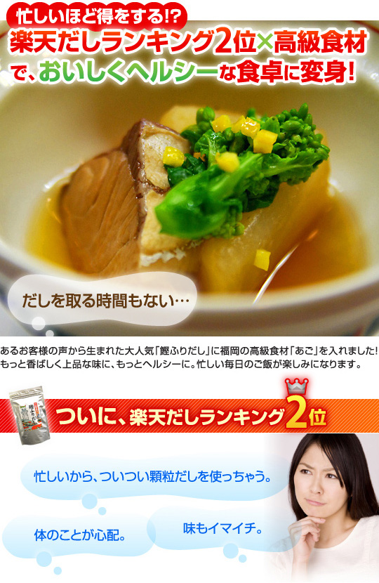 「本当は、ダメだって分かってる。」毎日忙しくてきちんとだしを取る時間もない、いつもは市販の顆粒だしを使っています。健康のためにも良くないし、味もイマイチ。本当は、ダメだって分かってるんですけどね。皆さんも同じようにお悩みではありませんか?