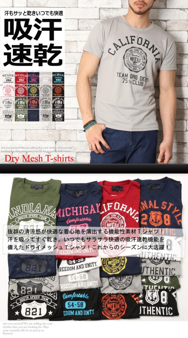 Tシャツ メンズ 吸水速乾 ドライメッシュ アメカジ Tシャツ カレッジ ロゴ プリント 大きいサイズ 選べる 夏新作 全20 半袖Tシャツ アメカジTシャツ ひんやり 冷感 UVカット