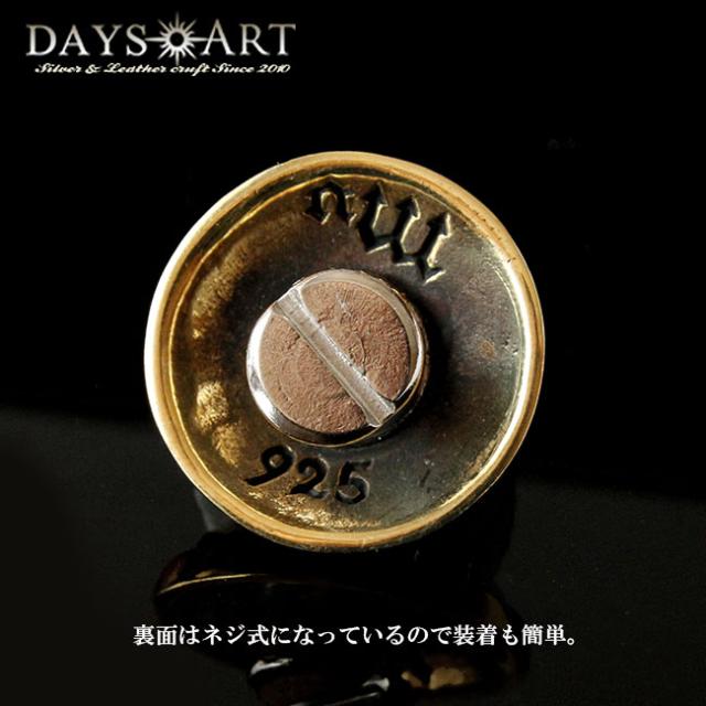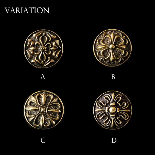 ゴシックデザインのクロスモチーフを使用したブラス製コンチョです。シルバーアクセの王道デザインが細部まで丁寧に表現されています。ブラスのゴールド色でゴージャスな印象になっています。裏面はネジ式になっているので装着も簡単なカスタムコンチョです。