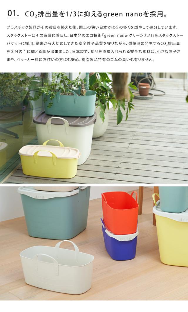 日本発のエコ技術green nano(グリーンナノ)をスタックストーバケットに採用。従来から大切にしてきた安全性や品質を守りながら、燃焼時に発生するCO?排出量を3分の1に抑える事が出来ました。日本製で、食品を直接入れられる安全な素材は、小さなお子さまやペットと一緒にお住いの方にも安心。樹脂製品特有のゴムの臭いも有りません。