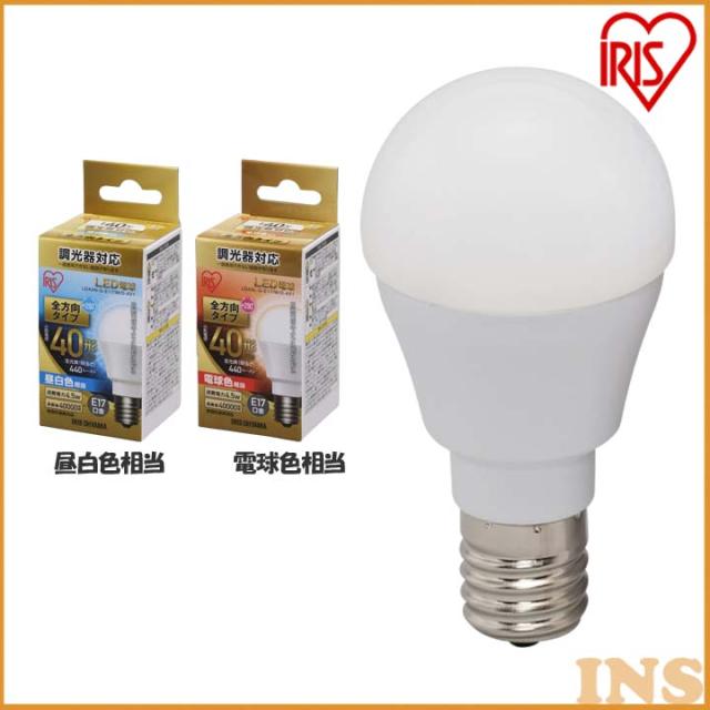 電球 LED電球 アイリスオーヤマ E17 40W 調光器対応 電球色 昼白色 全方向 LDA5N-G-E17/W/D-4V1 LDA5L-G-E17/W/D-4V1 密閉形器具対応 17口金 40W形相当 LED 長寿命 省エネ 全方向タイプ ペンダントライト