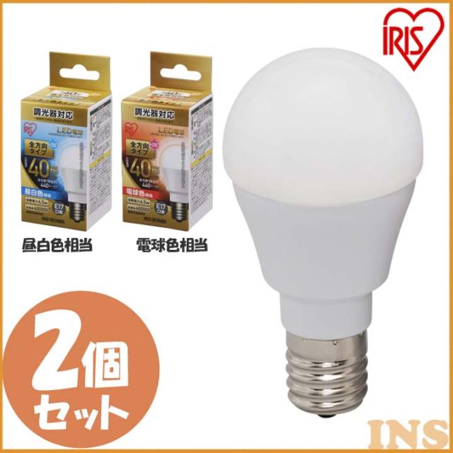 【2個セット】電球 LED電球 アイリスオーヤマ E17 40W 調光器対応 電球色 昼白色 全方向 LDA5N-G-E17/W/D-4V1 LDA5L-G-E17/W/D-4V1 密閉形器具対応 おしゃれ 17口金 40W形相当 LED 照明 長寿命 省エネ 節電 全方向タイプ ペンダントライト デザイン照明