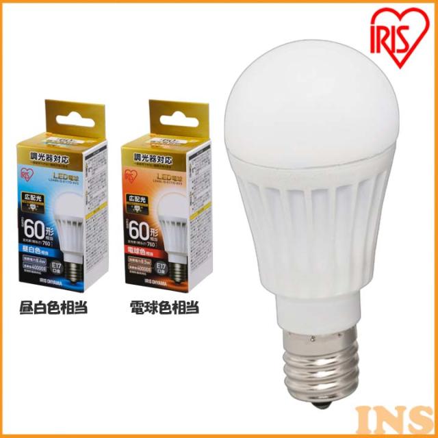 電球 LED電球 アイリスオーヤマ E17 60W 調光器対応 電球色 昼白色 広配光 LDA8N-G-E17/D-6V3 LDA9L-G-E17/D-6V3 密閉形器具対応 17口金 60W形相当 LED 長寿命 省エネ 広配光タイプ ペンダントライト デザイン玄関 廊下