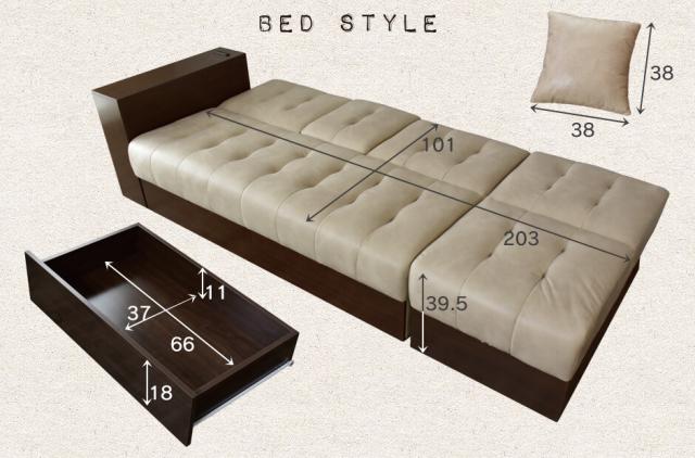 本体ベッド時全体:幅223×奥行101×高さ57.5(cm)
